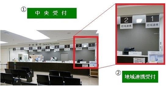 If you have a medical referral letter and have an appointment in advance, please ask our staff at the general reception desk Nos.1 and 2 [地域連携].